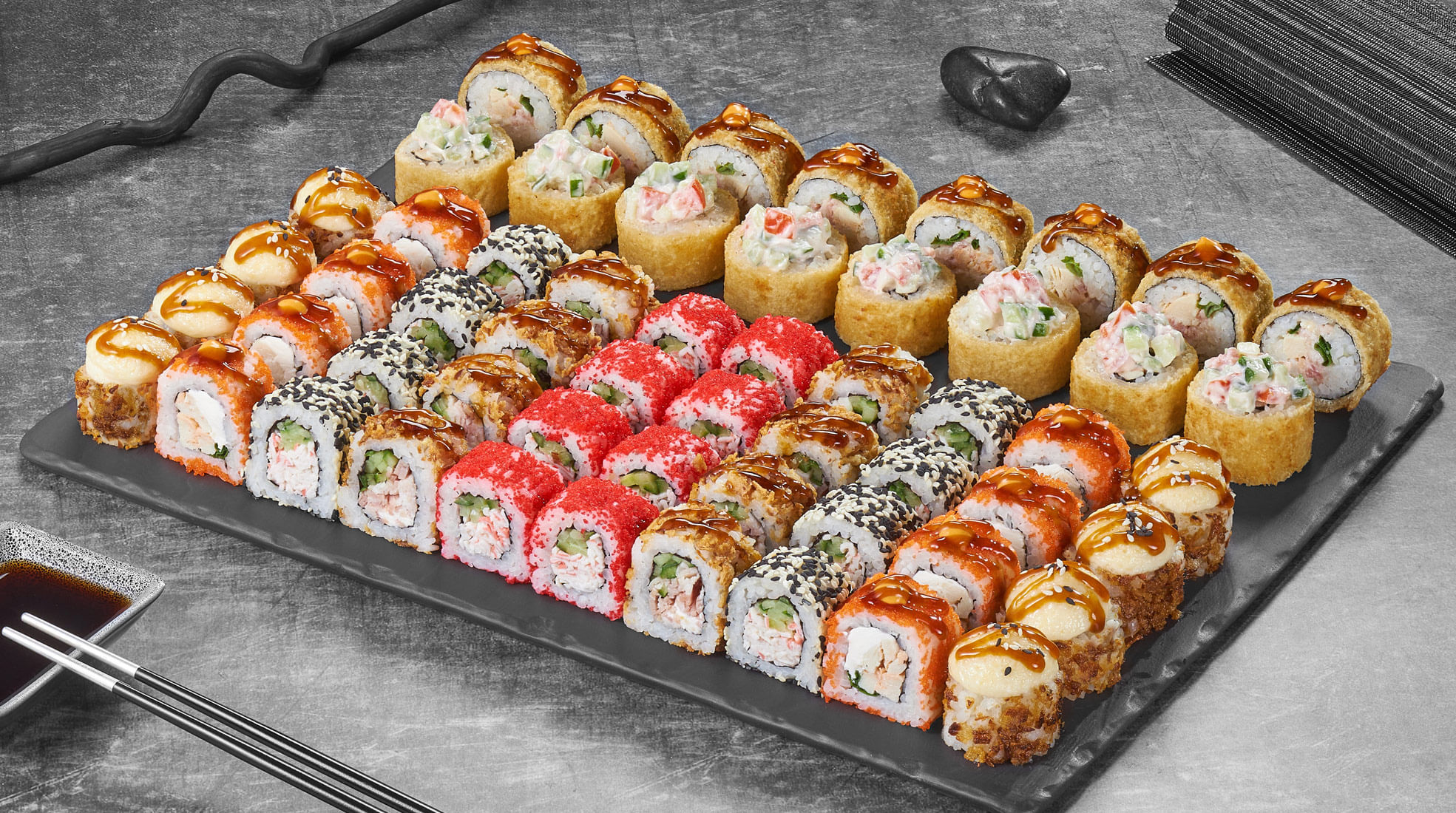 Состав: Ролл Дон бекон (8 шт.), ролл Острая курица (8 шт.), ролл Калифорния в кунжуте (8 шт.), ролл Калифорния классика (8 шт.), ролл Оливье темпура (8 шт.), ролл Темпурный с беконом (8 шт.), ролл Чикен фри хот запеченный (8 шт.) *Внешний вид блюда может отличаться от фото на сайте.